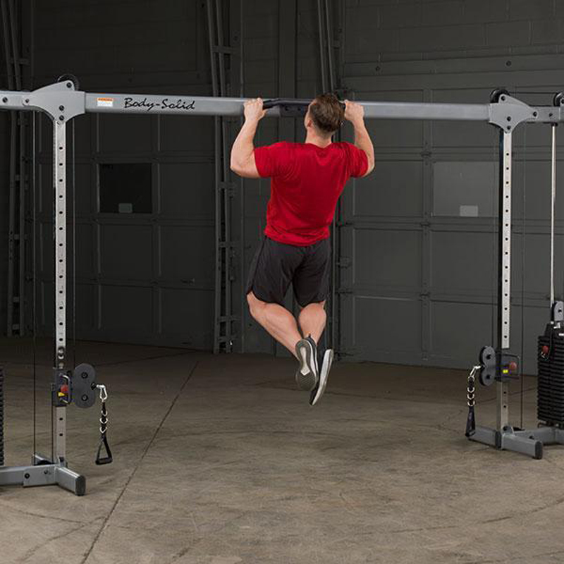 Body-Solid GDCC250B Cable Crossover. Sturdy and stable, the new design lets you exercise virtually every major muscle group in your body. Interchangeable cable handles provide an unlimited number of possibilities for all experience levels, and the extra wide and tall mainframe provides you with easy access to an endless array of high and low pulley exercises. The Cable Crossover's unique pull-up station offers multiple grip positions, and dual independent carriages have been ergonomically designed to offer twice as many height adjustments as previous Body-Solid crossover stations.