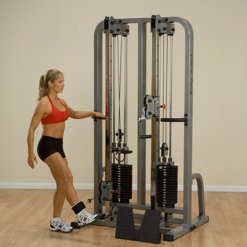 Built for heavy duty Club and Home use. In only a 3' x 4' area, you can perform an unlimited amount of exercises that will sculpt your body into statuesque form, safely and quickly. Dual weight stacks offer a resistance range fit for beginners and professional athletes alike. With a simple pop-pin adjustment, the vertically adjustable pulleys can be set for over 100 exercises at a level that is comfortable for any size user. When it comes to stability and durability, Body-Solid can't be beat with heavy gauge 2" x 4" mainframe construction and aircraft quality cables and pulleys.