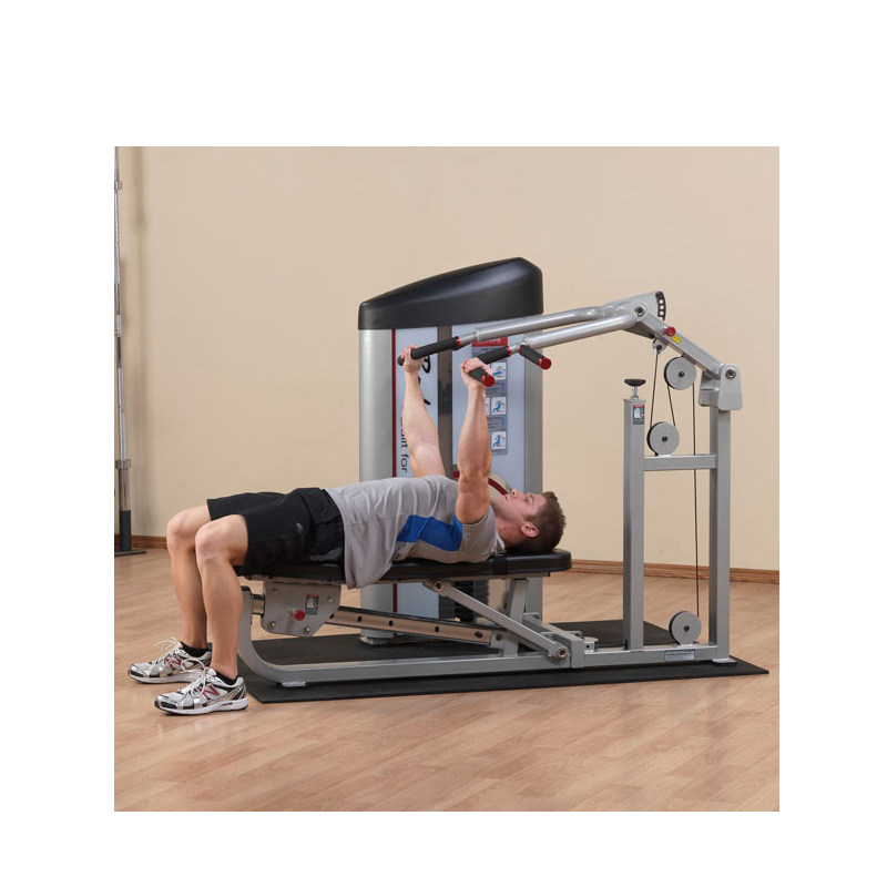 Body-Solid Pro ClubLine Series II Multi Press. Designed to provide an intense workout while eliminating strain, the Pro Clubline Series II pieces are hard to beat. Easy and convenient step in entry makes getting started a breeze. Thick, comfortable DuraFirmâ„¢ pads reduce fatigue and discomfort allowing you to keep working out. Rock solid support and stability is delivered via heavy-gauge steel frames with all-4-side welded construction. The fully shrouded weight stack offers a safe and attractive machine that is sure to be a hit in any facility.