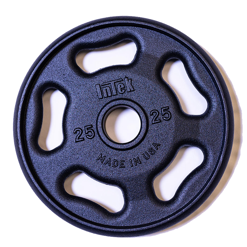 InTek Kraft Steel Cast Olympic Plates - uses five grips on the 25 lb. and