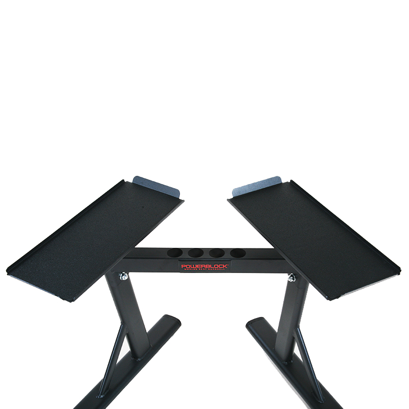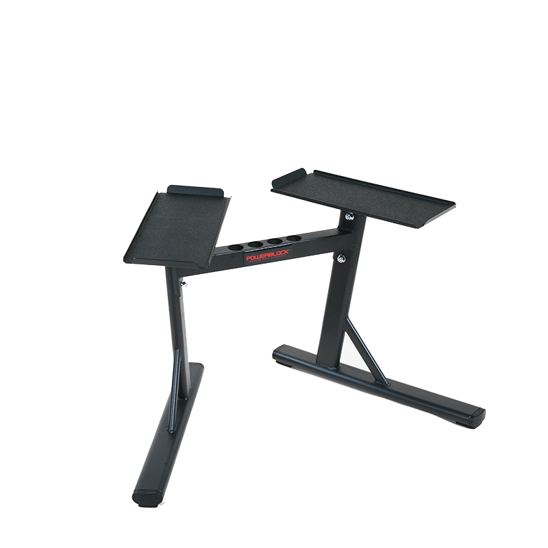 Design & Functionality. The PowerMax Stand is the ultimate stand for expandable PowerBlock™ dumbbells, offering easy access and quick weight changes while maintaining a small footprint perfect for any room. This stand is engineered for comfort and convenience, allowing you to “step in” when removing weights without needing to bend over, making it easier to maintain good posture during your workouts. With its split design and flat trays, the PowerMax Stand gives you the perfect storage solution for your PowerBlock expandable dumbbell sets.