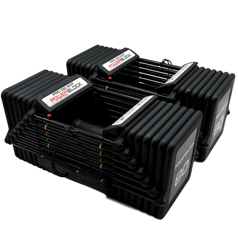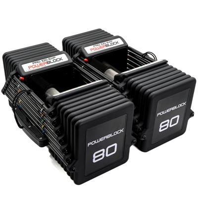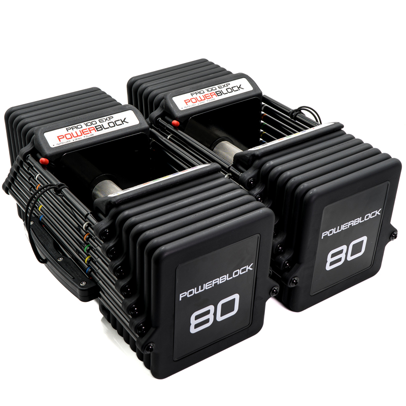Includes: 1 pair of - PowerBlock Pro 100 EXP Adjustable Dumbbells - 80 lb.