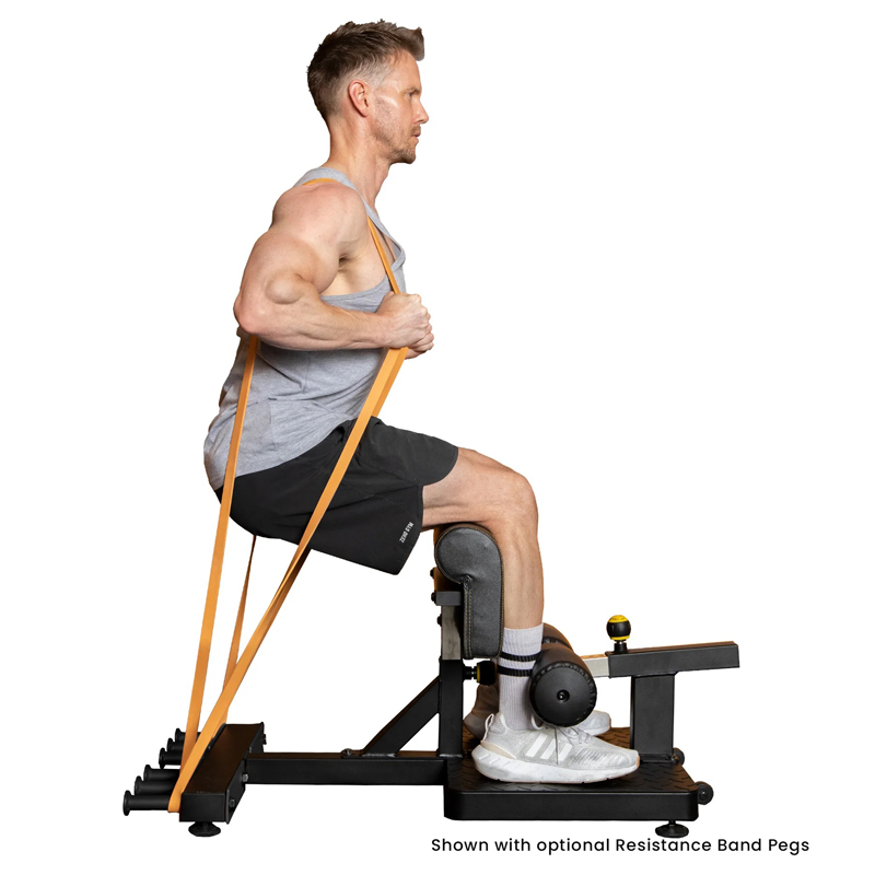 The Sissy Squat Pro has the option to add 2 Resistance Band Pegs at the rear. This allows for Resistance Bands to be incorporated into many movements for increased resistance. (You can find these within the Attachments category)