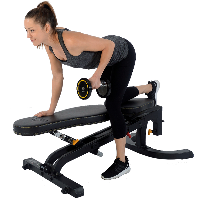 The entire seat assembly can slide along the frame allowing the user to find the perfect fit. (The bench has 9 horizontal positions, and 9 vertical positions, including decline, flat, and 7 incline positions).