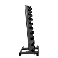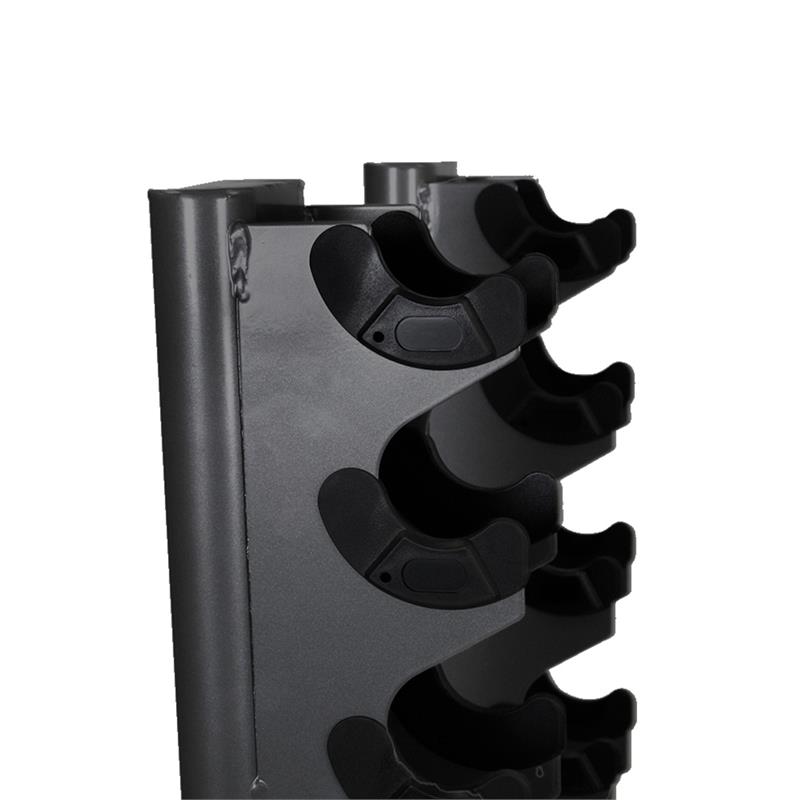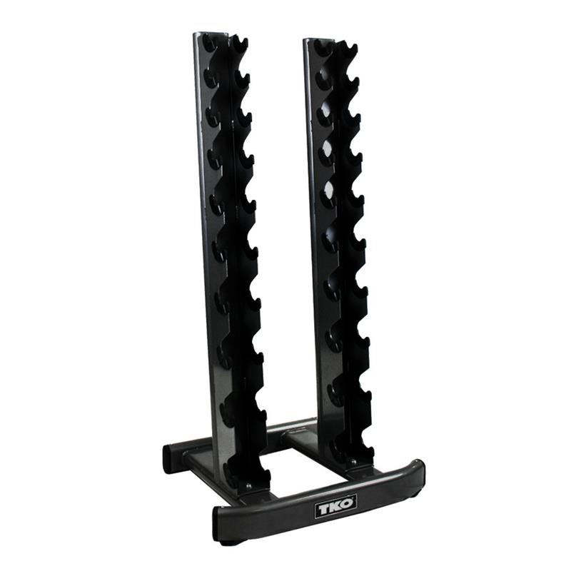 The TKO 10 Pair Vertical Dumbbell Rack boasts a modern, intelligent design. The vertical architecture of this TKO rack makes it a perfect fit for any sized workout area. In fact, the dimensions of this item are ideal for individuals and gyms trying to save space. In total the rack takes up approximately 2 feet of floor space.
