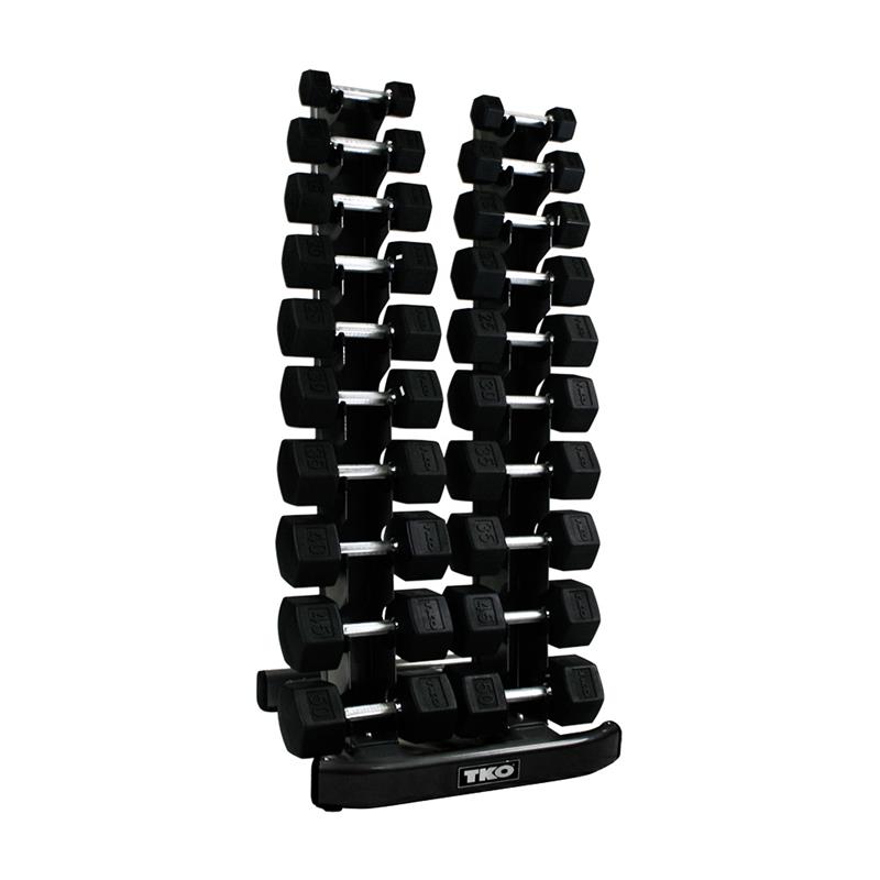 TKO 804SXR 6 Sided Rubber Encased Dumbbell Set w/840VDR10-BK Black Rack - 5 to 50LB