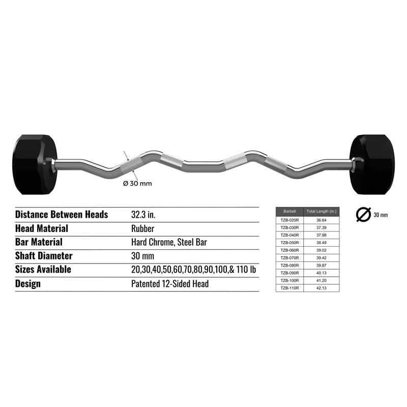 Troy 12 Sided Rubber Fixed Curl Bar Set - 20 to 110LB