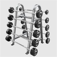 - Capacity: Holds 10 fixed barbells or curl bars.