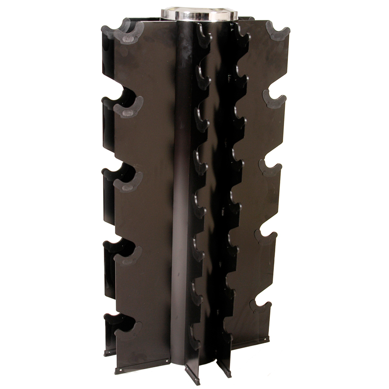 compact vertical dumbbell rack is designed to hold a run of 3 to 50 lb. of Iron Hex, Rubber Hex, VTX 12 Sided Iron or Troy TSD-R dumbbells. The user friendly design allows