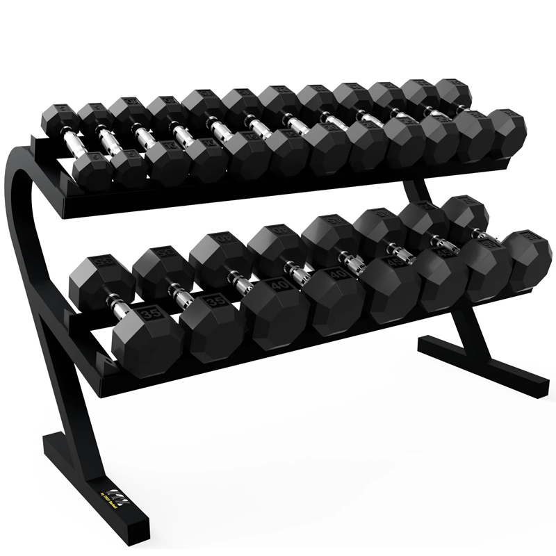deluxe 2-tier horizontal dumbbell rack will store a full 10 pair run of