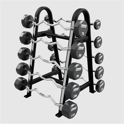 - Capacity: Holds 10 fixed barbells or curl bars.