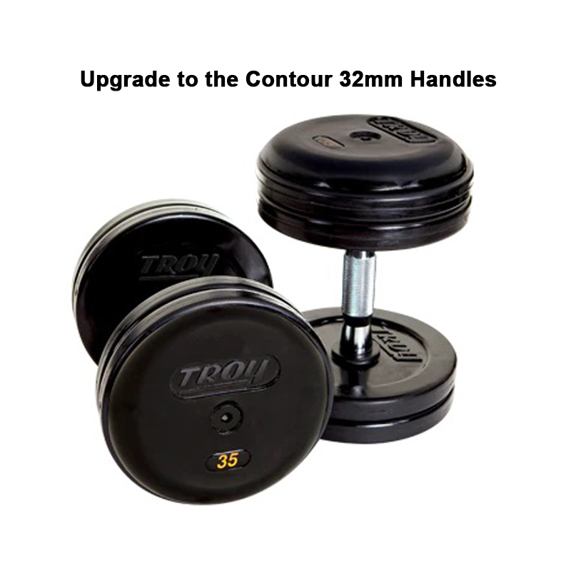 rubber encased TROY pro-style dumbbells are all professionally pre-assembled by us to