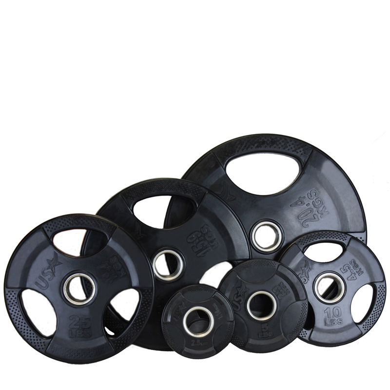 The USA rubber encased grip plate is here. This Olympic 2” grip plate has both the poundage marking as well as the KG markings for easily identifiable weight. A unique three hole grip with raised texture handles for a sure grip. This is also a branded plate with the USA SPORTS logo at the top to set this quality plate apart from others in the market. With a great product, a 90 day warranty and the solid reputation of USA SPORTS this item is the perfect addition to any home gym.