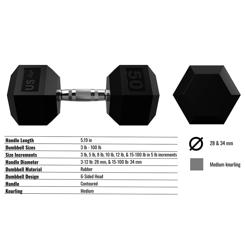 Our Troy USA Sports HD-R Rubber Hex Dumbbells are designed for reliable performance in home gyms and various fitness environments. The 6-sided, anti-roll heads stay securely in place, while the solid steel, chrome contoured handles provide a comfortable grip.