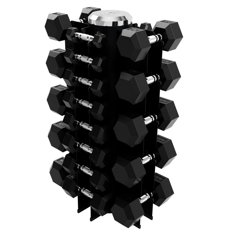 Troy USA Sports VERTPAC-HDR50G HD-R Rubber Encased Hex Dumbbell Set - 5 to 50LB with Rack