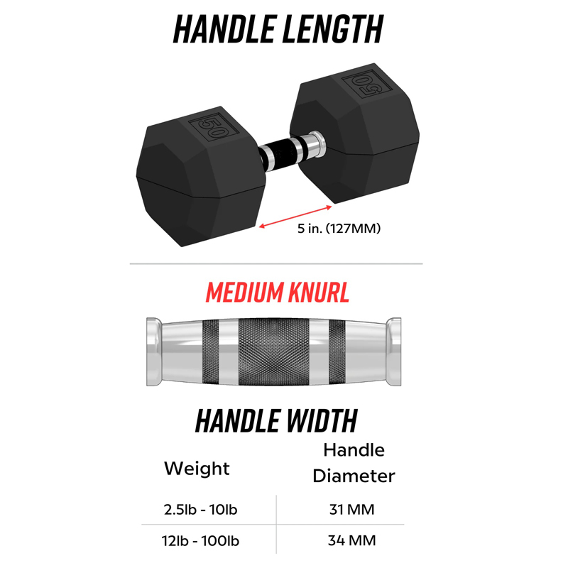 - Handle Grip Size: 31mm 3 lb. - 10 lb., 34mm 12 lb. - 100 lb.