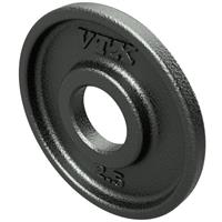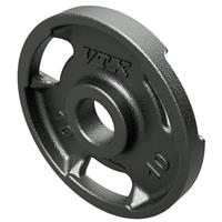 Affordable quality, our VTX high-grade, wide-flanged, Olympic Grip Plates feature 3 slotted gripping areas (45 lb., 35 lb., 25 lb. and 10 lb. only) that actually raise the plates off of the ground, providing easier lifting and loading from a prone or angled position. Raised reinforcements on both sides of each grip slot help make it a true institutional plate and the choice of trainers, world wide. Center bores are precision drilled for a snugger fit on most 2” Olympic bars. Rust resistant, twice baked gray enamel finish. Warranty: 1 year.