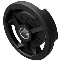 VTX high-grade, wide-flanged "Quiet Iron" Olympic Grip Plates deliver top-tier durability, convenience, and equipment protection at an affordable price. The three-slotted grip design (available on 45LB, 35LB, 25LB, and 10LB plates) allows for easy lifting and loading, while the rugged rubber encasing protects your plates, floors, and other equipment from damage. Raised reinforcements on both sides of each grip slot ensure enhanced strength, making these plates a trusted choice for trainers worldwide. The new steel center bore insert provides a secure and snug fit on most 2” Olympic bars.