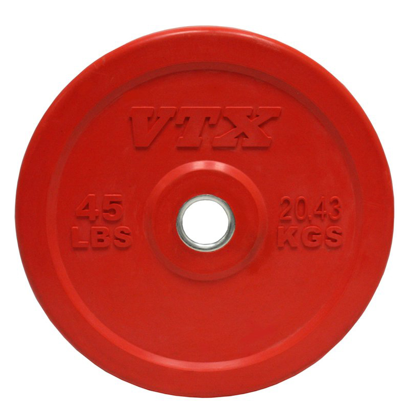 VTX Colored, Solid Rubber Bumper plates with solid steel inserts are