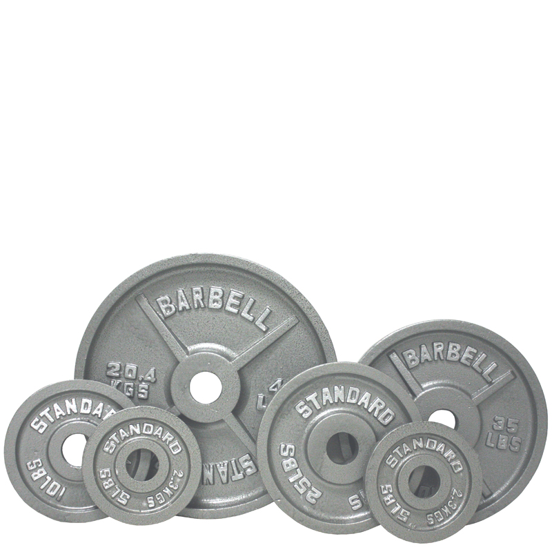 with rims and radius edges that are milled for comfort. The machine-bored holes help protect the bar and facilitate easier plate loading and removal. All plates have raised silver numbers and letters for fast, easy selection and are a grey enamel finish.